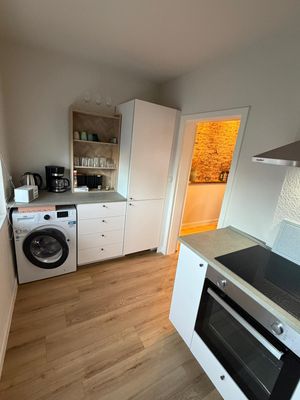 Die geschlossene Küche ist funktional ausgestattet und bietet gute Voraussetzungen für die Selbstversorgung. Zur Verfügung stehen ein 4-Platten-Herd, Backofen, Kühlschrank mit integriertem Gefrierfach, Spülmaschine, Kaffeemaschine, Wasserkocher, Toaster sowie Küchenutensilien, Geschirr, Besteck und Geschirrhandtücher. Sie finden eine vollausgestattete Küche vor, sodass Sie Ihren Aufenthalt von Anfang an unkompliziert organisieren können.